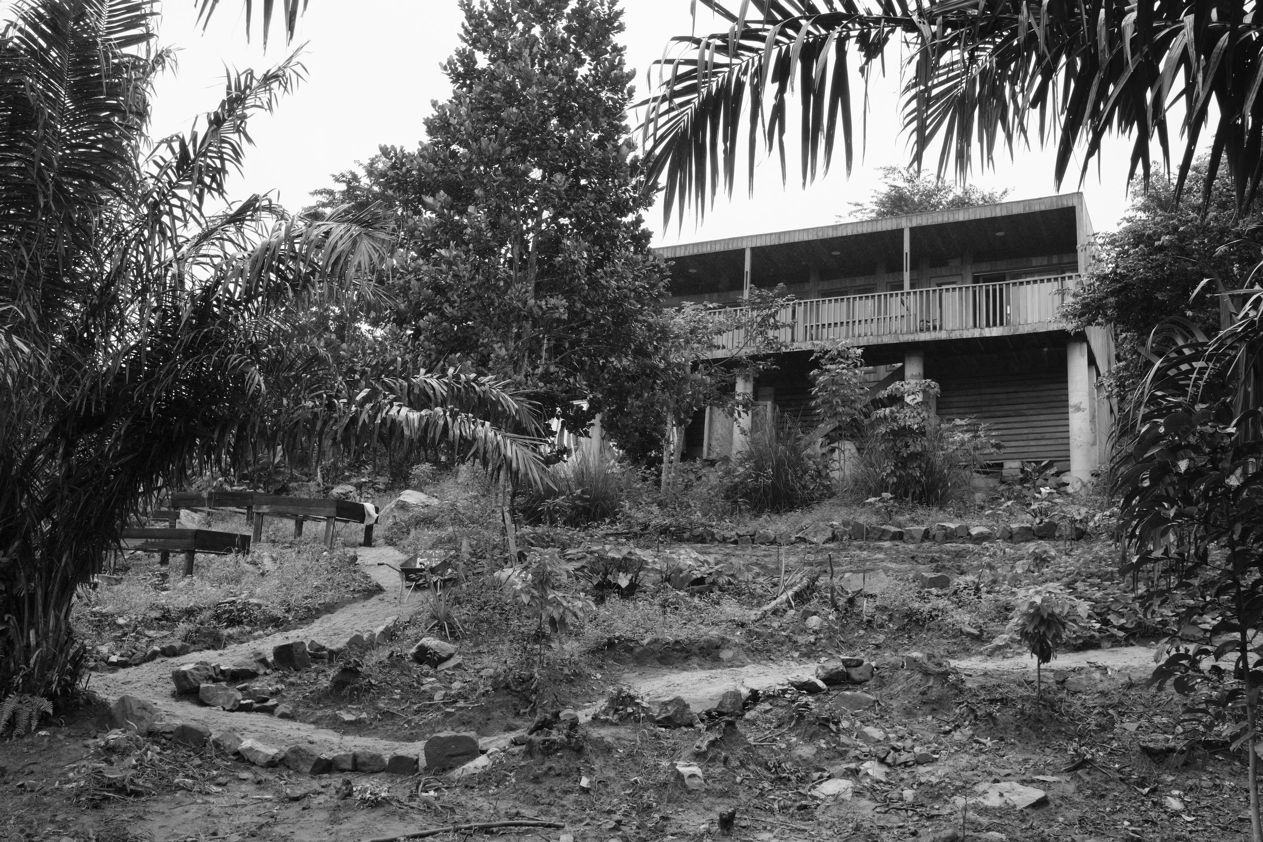 Despite the height of the forest on the drive to the land, the treescape is relatively young. Timber extraction and fires resulting from drought in the early 1980s have transformed the ecologies of Ghana’s Eastern Region, disappearing much of the original forest around the Konkonuru area. Alongside the extraction of palm oil and cocoa, large areas of forest in Ghana were subsumed into the British government’s project of acquiring “empire timber”, or woods from various British colonies. As architect Iain Jackson details in his work with the Transnational Architecture Group, the British-owned African Timber and Plywood Company played a central role in extracting African mahoganies, walnuts and teaks that were used to construct the interior decoration, floorings and furniture of British homes, universities, post offices and libraries from the 1950s and 60s onward.
