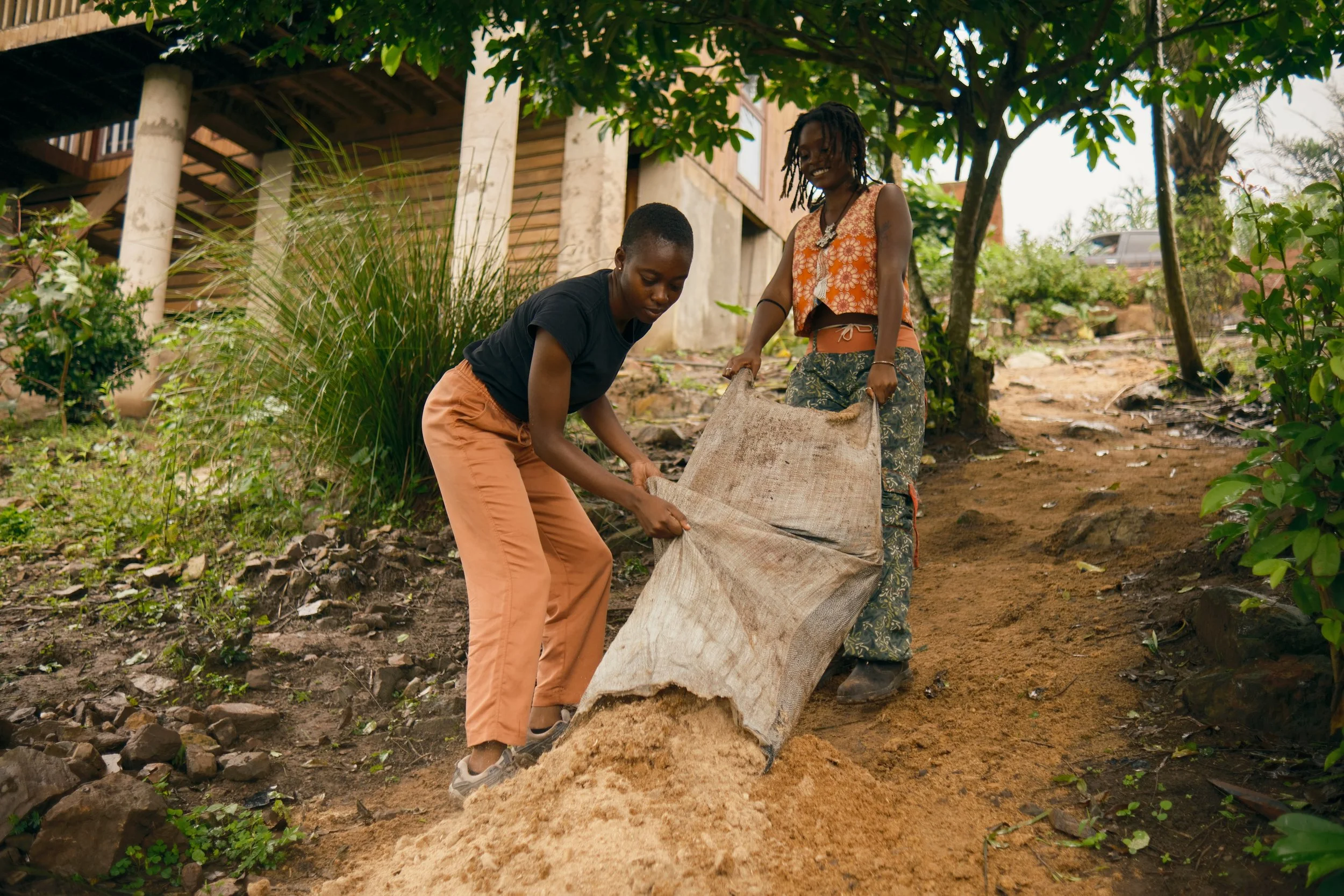 Fowota Mortoo (left) and Taeya Boi-Doku (right), working on the ANO garden (image: Alfred Quartey).