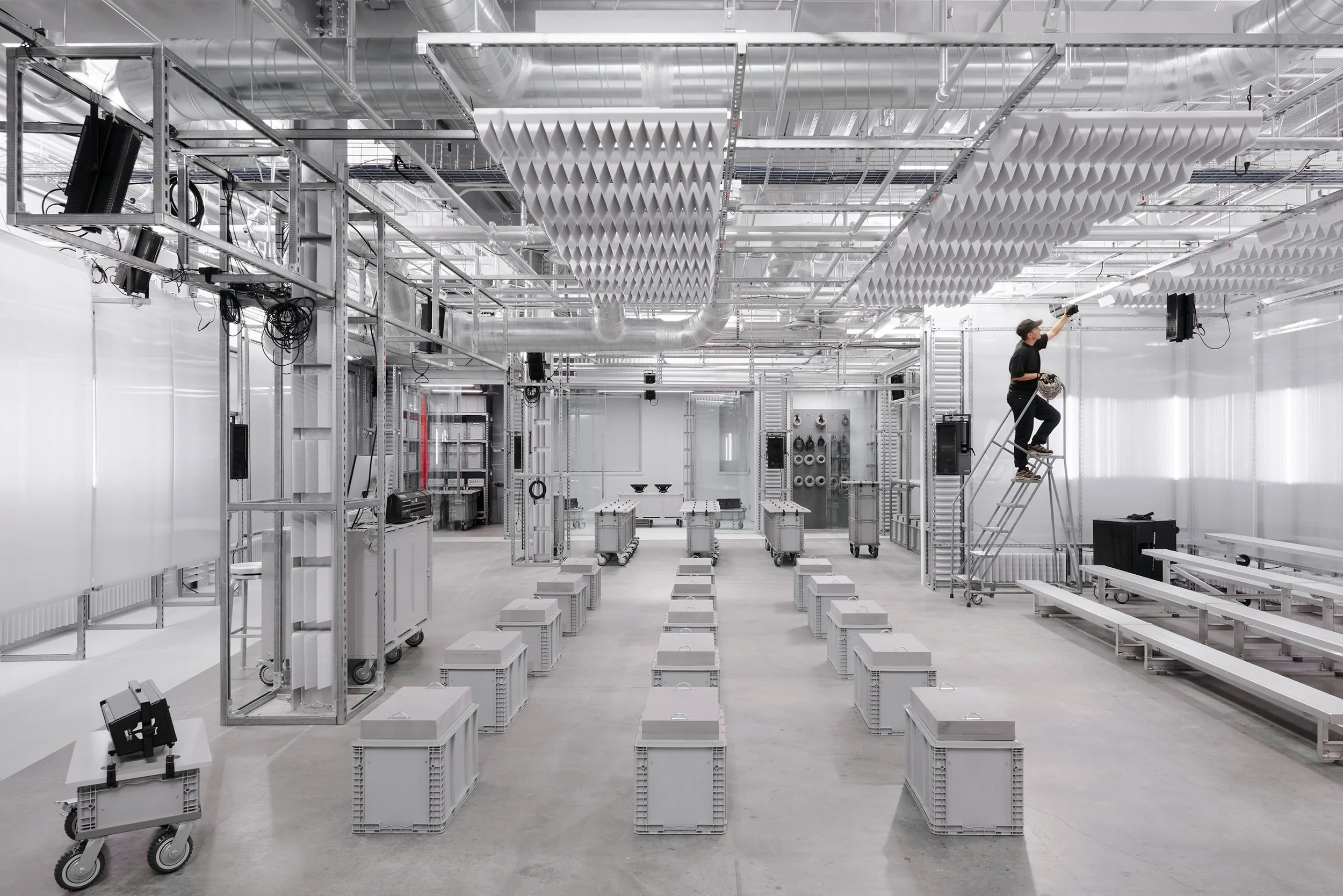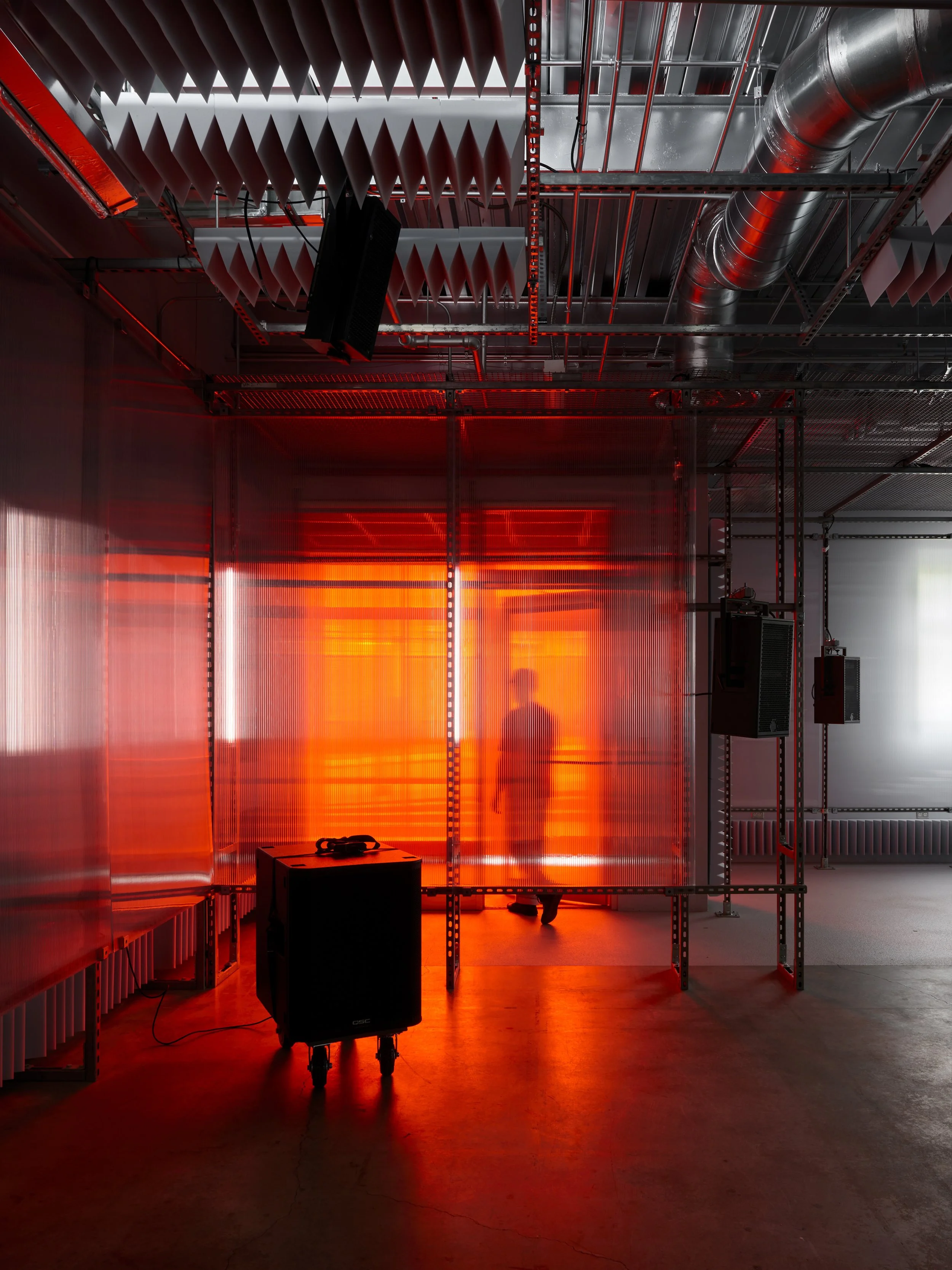 The Warehouse builds upon two of Fure’s preexisting collaborations, the first with her brother Adam Fure, the cofounder of architecture practice T+E+A+M, who acted as a lead architect on the project. Early in their careers, the siblings co-designed The Force of Things (2014-2022), an opera about climate change that included sculptures which swayed ominously, moved by vibrations from speakers emitting sounds so low as to be inaudible to human ears. “Without fail, nobody wanted to leave at the end of that show,” Fure remembers. “They just wanted to stay in that world, and be in it as long as they could.” The Warehouse was an opportunity to create an immersive environment that could offer longer-lasting experiences. “These listening events can be 12 hours long,” Fure says excitedly. “They could happen at 6am or they could happen at midnight.”