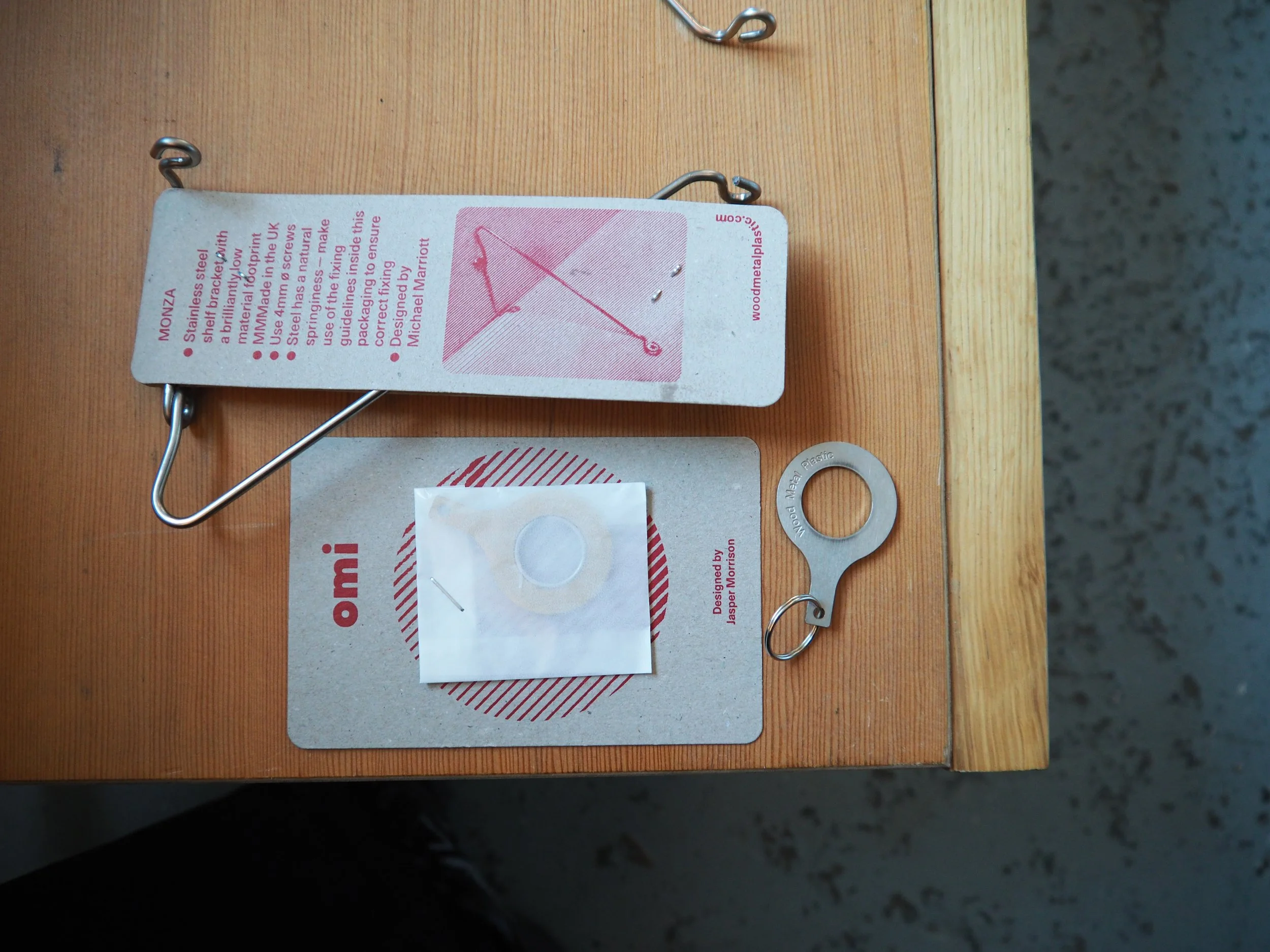 Yet despite this gallery-like function, there are other ways in which Unit.d resists the tag. In place of luxury or editioned design, the space has been curated by Riches as a vehicle for industrial design made in batches or large production runs, with a focus on everyday, affordable objects. The space’s debut show is Wood Metal Plastic, a display of small objects designed by Michael Marriott, with an additional contribution by Jasper Morrison. “They're all new things, but they're all very little things, which is kind of fun,” Riches explains, with price tags for the objects on display kept low by the nature of the products: a key ring, a shelf bracket and a hook. The Omi keyring, Morrison’s contribution, is a neat ring of metal, shaped a little like a miniature spyglass, while Marriott’s curled wall-mounted Homer bottle opener is accompanied by his Monza shelf bracket, which makes use of steel’s “natural springiness” with its elegantly looped metal wire construction.